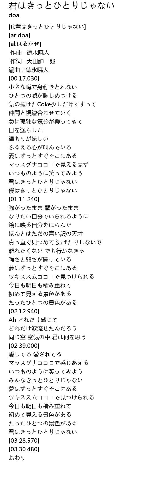 | [01:06.250] | 僕はきっとひとりじゃない |