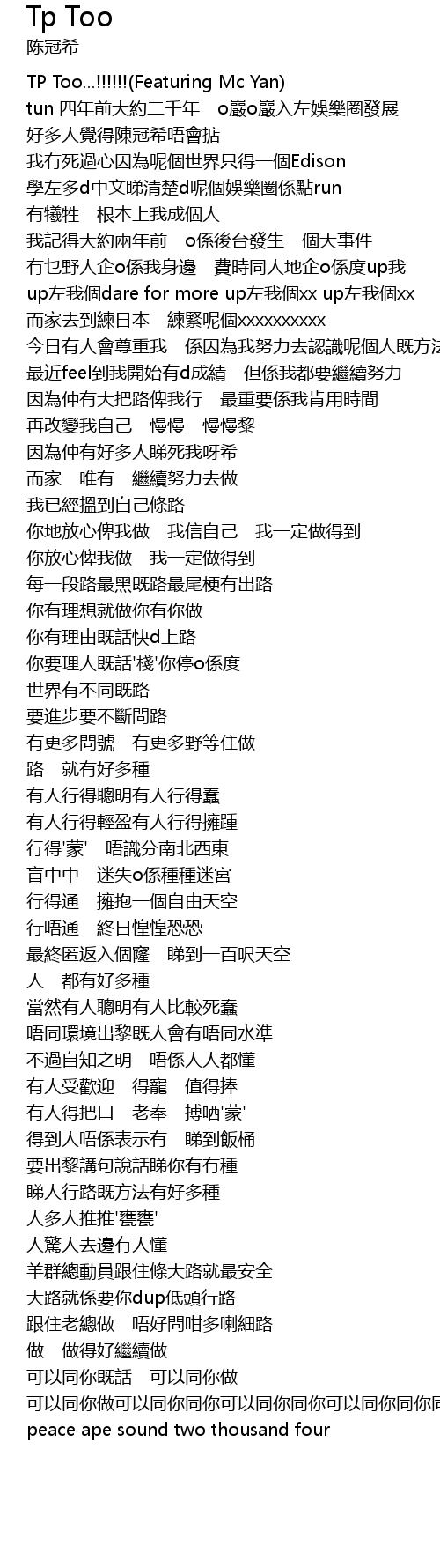 | TP Too...!!!!!!(Featuring Mc Yan) | |
