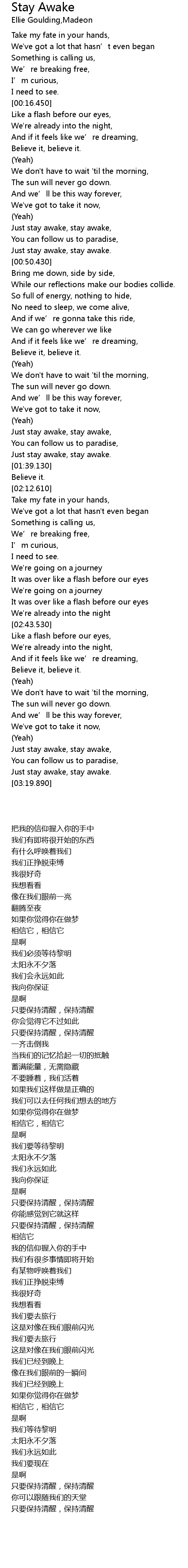 | [01:30.510] | Just stay awake, stay awake, |