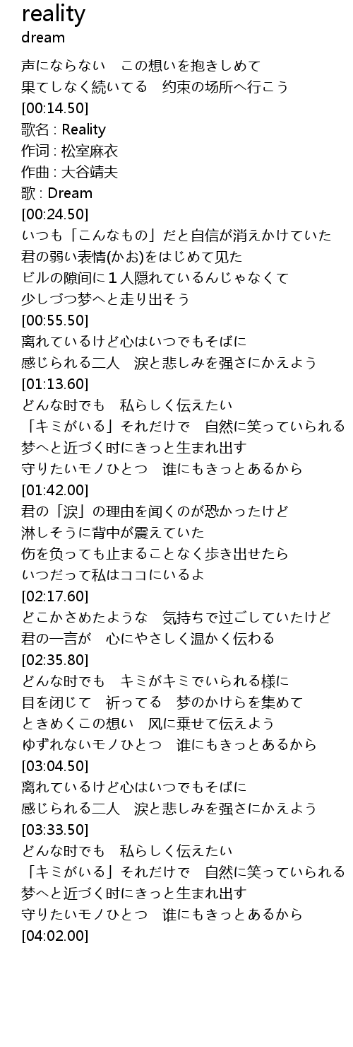 | [00:16.50] | 歌名 : Reality |