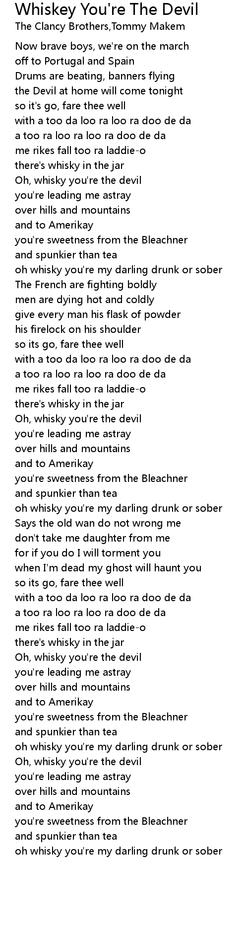 Song Whiskey You're The Devil