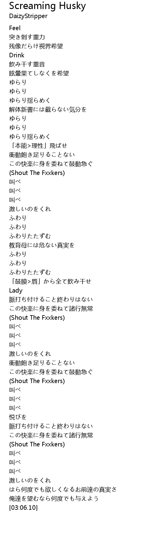 | [01:23.12] | Shout The Fxxkers |