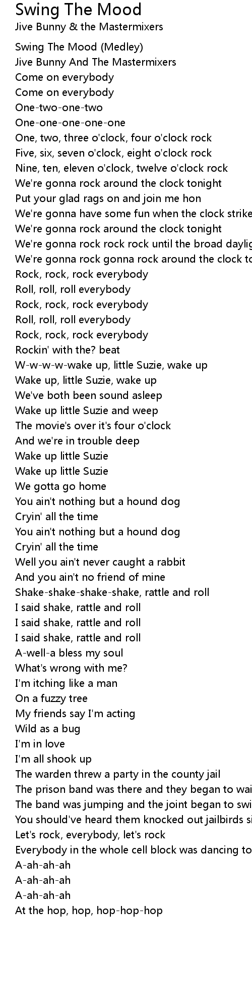 Nine, ten, eleven o'clock, twelve o'clock rock |