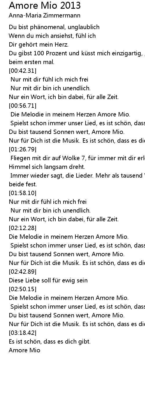 | [03:04.35] | Du bist tausend Sonnen wert, Amore Mio. |