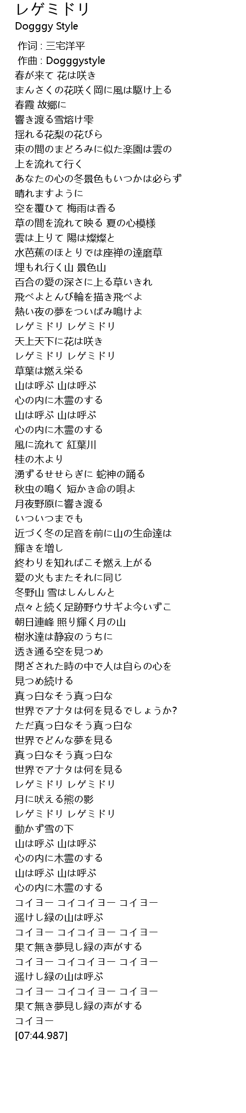 | [02:57.884] | レゲミドリ レゲミドリ |