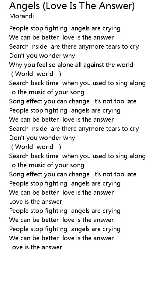 | Song | Angels (Love Is The Answer) |