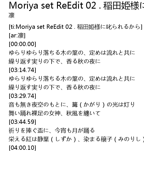 | [ti:Moriya set ReEdit 02 . 稲田姫様に叱られるから] | |