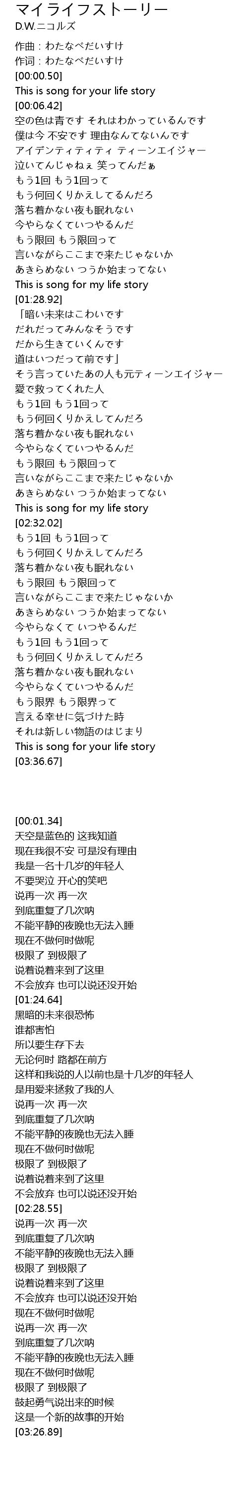 | [02:28.55] | This is song for my life story |