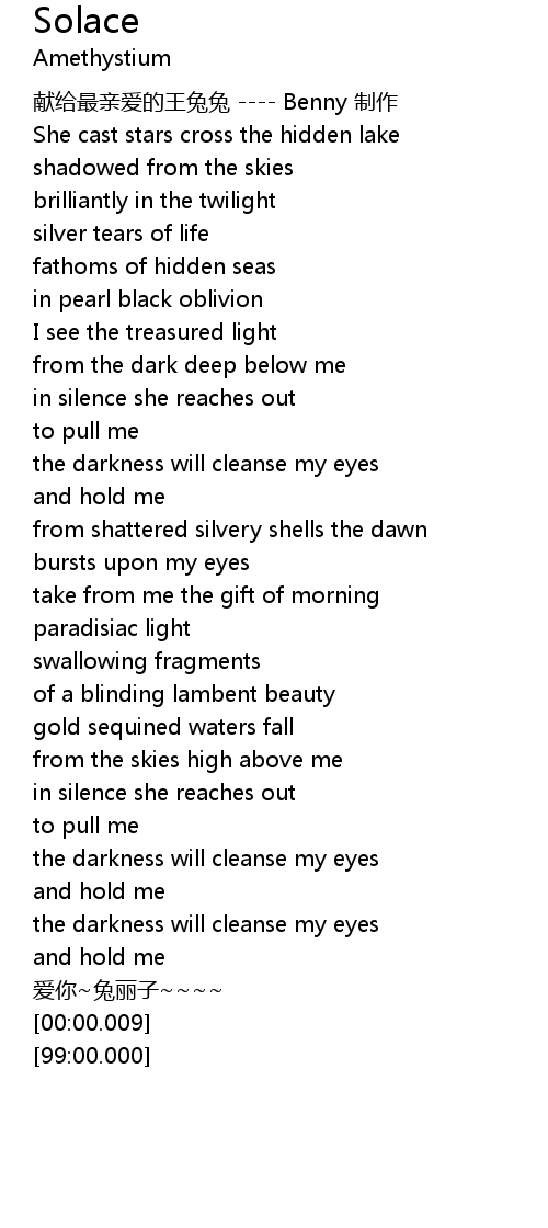 | [00:39.27] | She cast stars cross the hidden lake |