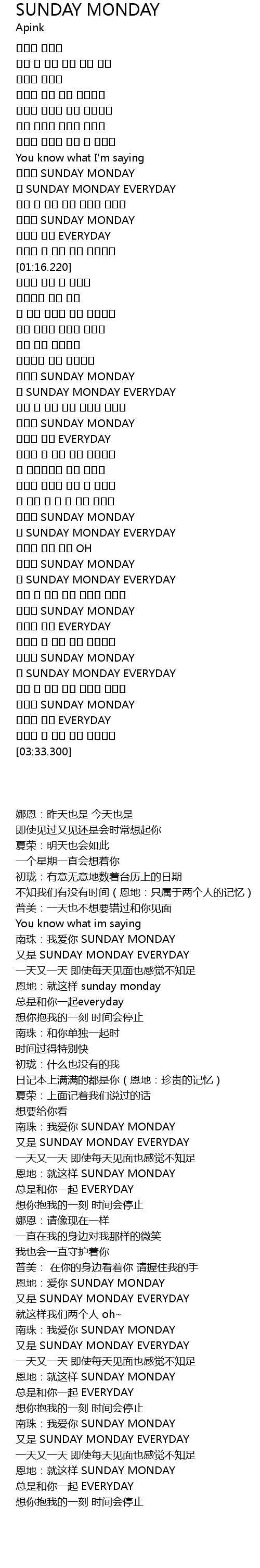 | [03:19.680] | 이렇게 SUNDAY MONDAY |