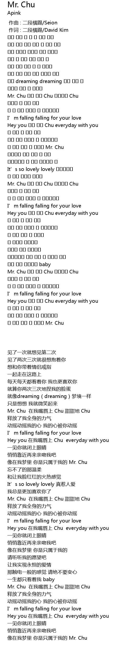 | [02:33.810] | Mr. Chu 입술 위에 Chu 달콤하게 Chu |