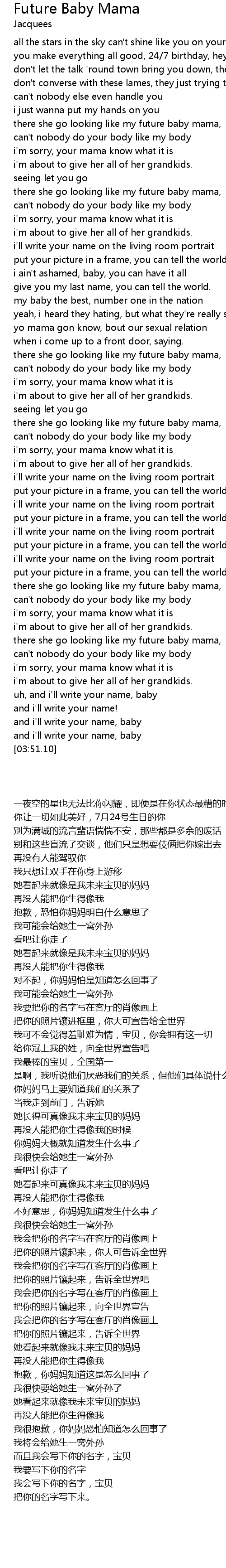 | [01:47.50] | yo mama gon know, bout our sexual relation |