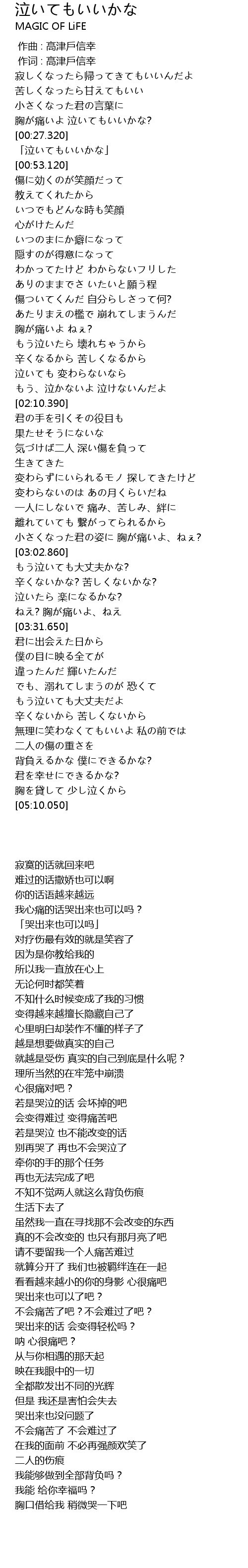 | [03:17.340] | 泣いたら 楽になるかな? |