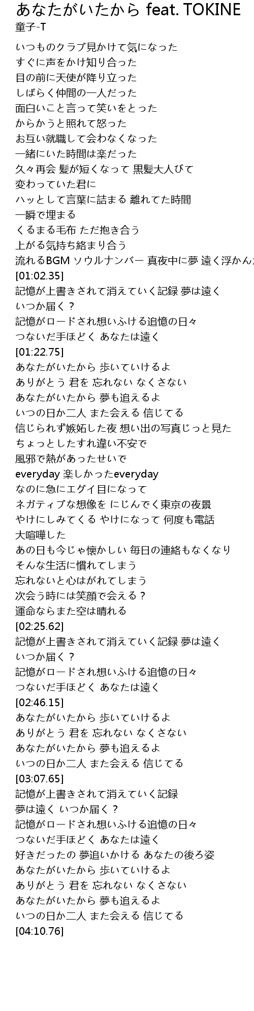 | [02:46.81] | あなたがいたから 歩いていけるよ |