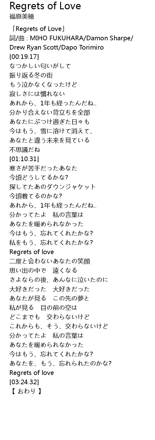 | [00:01.17] | 「Regrets of Love」 |