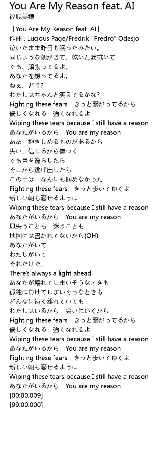 | [00:00.37] | 「You Are My Reason feat. AI」 |