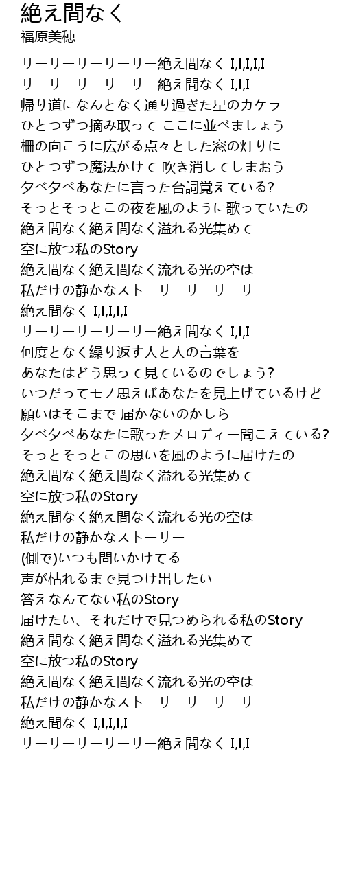 | 絶え間なく絶え間なく溢れる光集めて | |