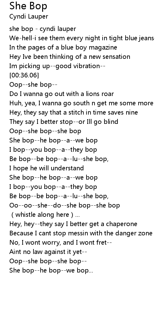 | [02:38.76] | She bop--he bop--we bop... |