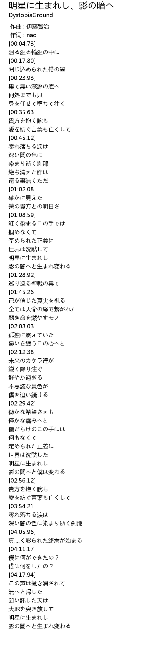 | [03:59.77] | 深い闇の色に染まり逝く刹那 |