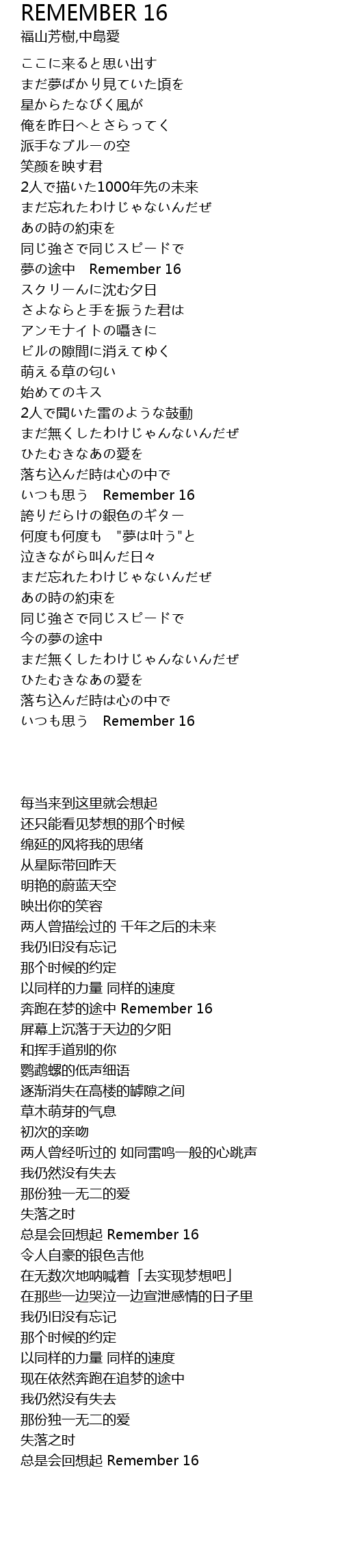 | [01:12.46] | mèng tú zhōng Remember 16 |