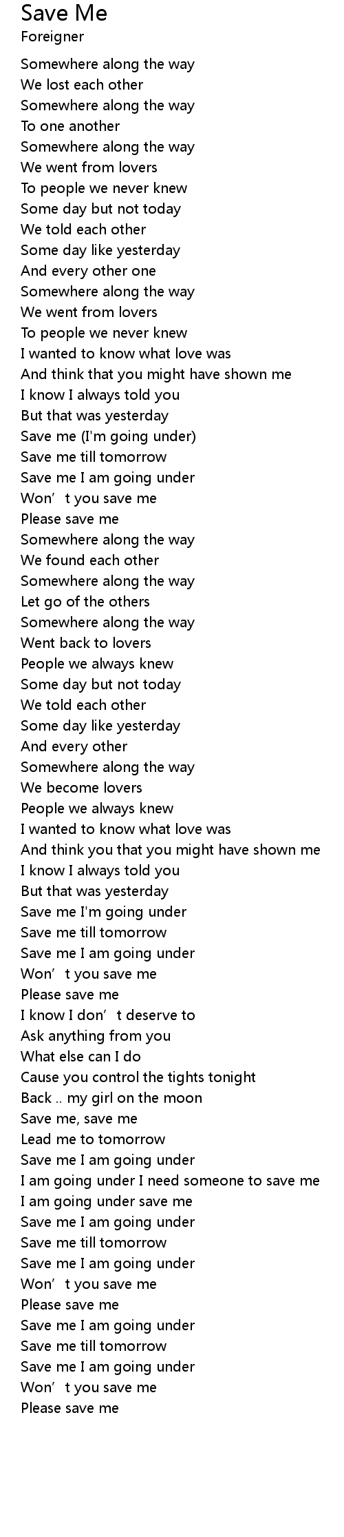 | Save me I am going under | |
