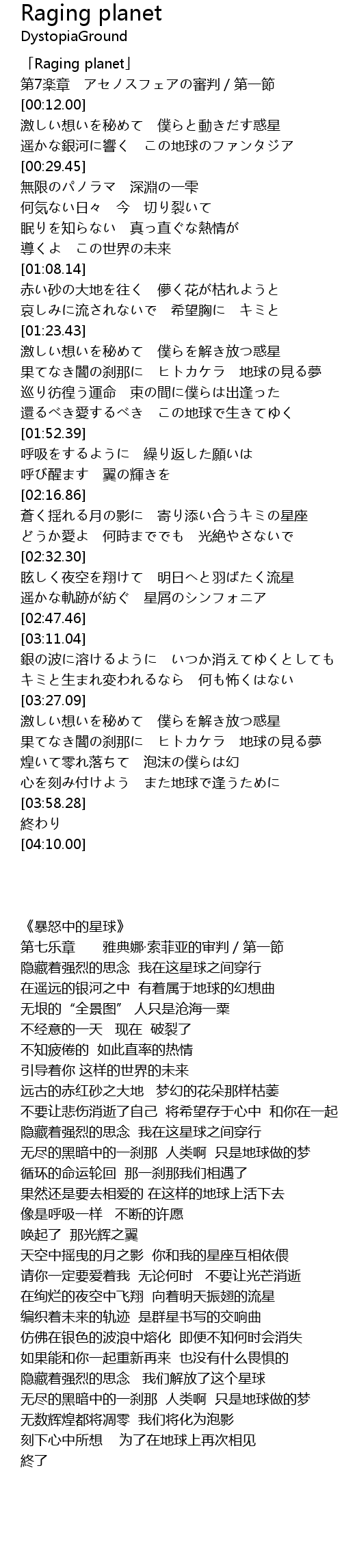 | [00:00.00] | 「Raging planet」 |