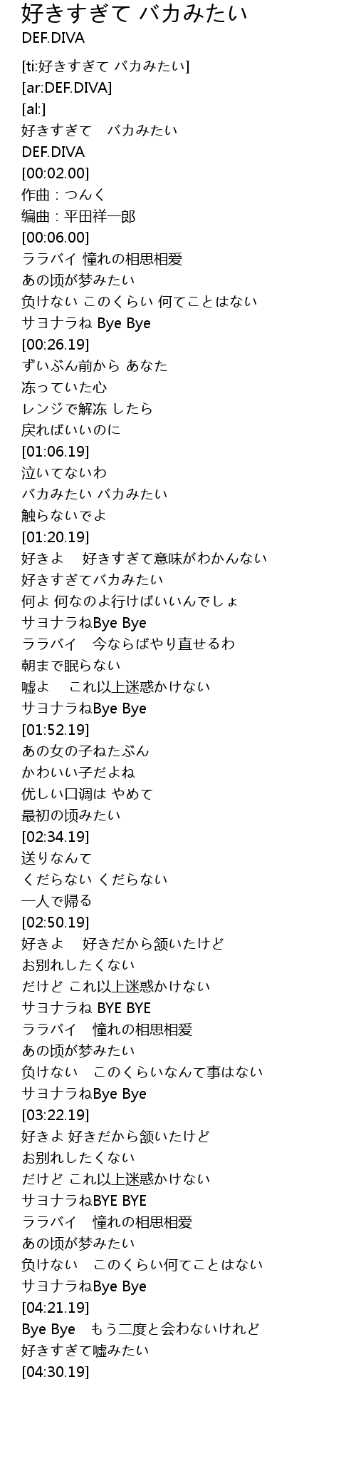 | [04:19.19] | サヨナラねBye Bye |
