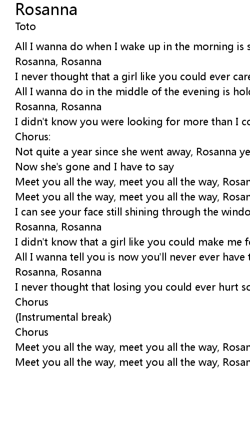 Meet you all the way, meet you all the way, Rosanna yeah |