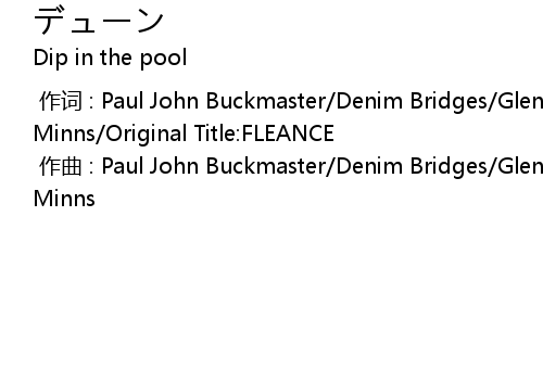 | [00:00.000] | 作曲 : Paul John Buckmaster/Denim Bridges/Glen Sweeney/Paul Keith Minns |