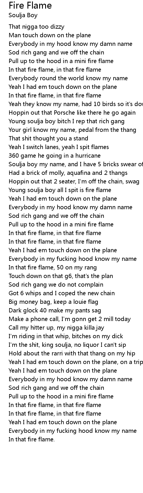 Young soulja boy all I spit is fire flame |