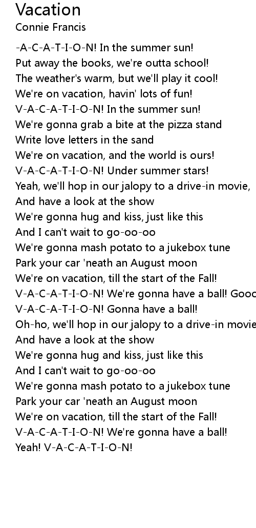 V-A-C-A-T-I-O-N! We're gonna have a ball! Goooooo! |