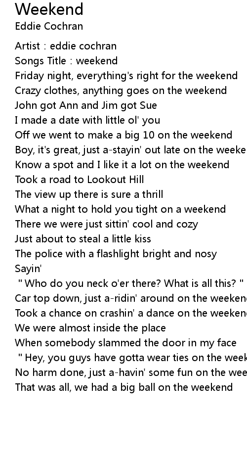 | Songs Title: weekend | |