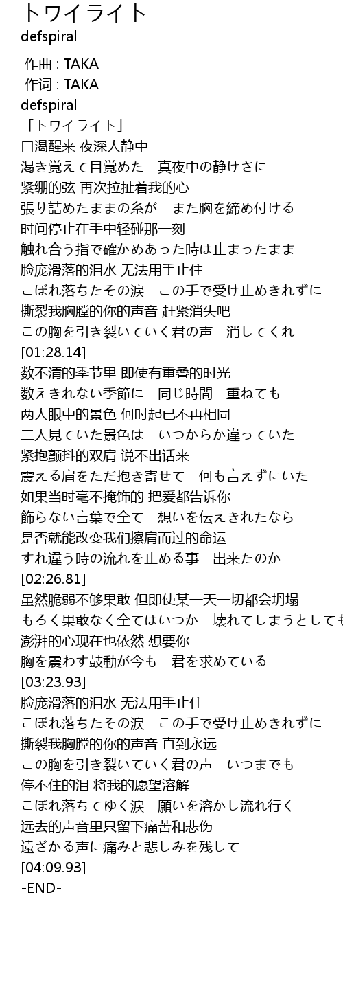 | [00:29.50] | 「トワイライト」 |