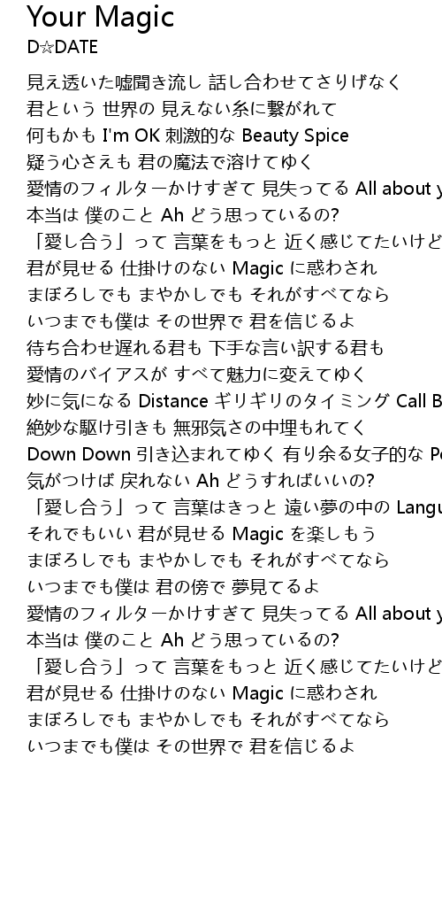 | 君が見せる 仕掛けのない Magic に惑わされ | |