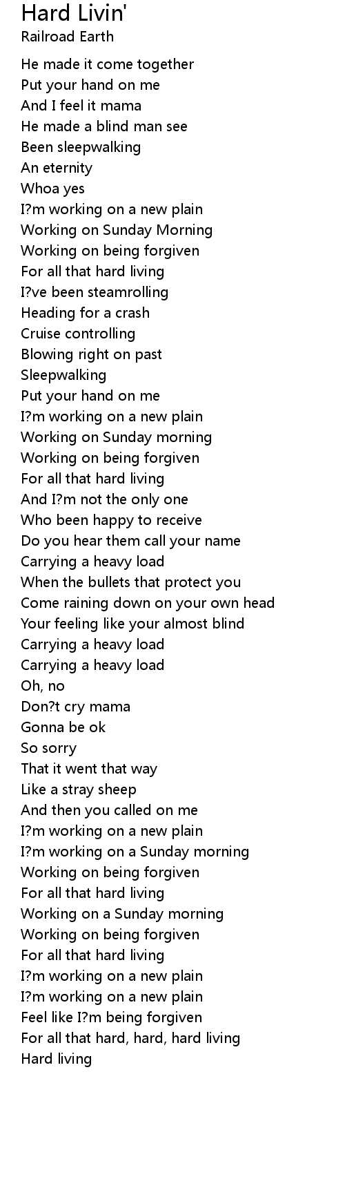 For all that hard, hard, hard living |