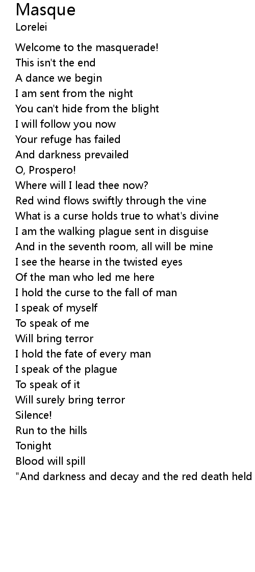 "And darkness and decay and the red death held illimitable dominion over all.." |