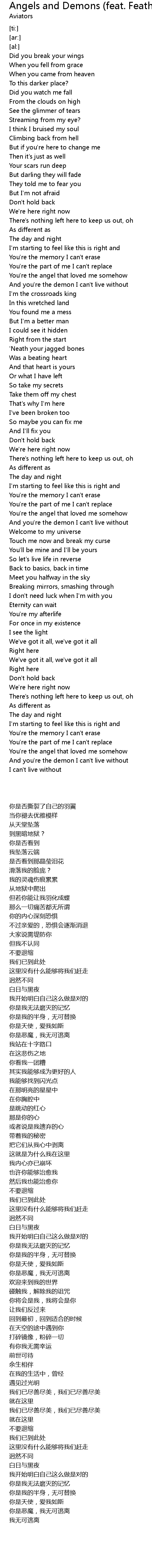 Angels and Demons (feat. Feather) Lyrics