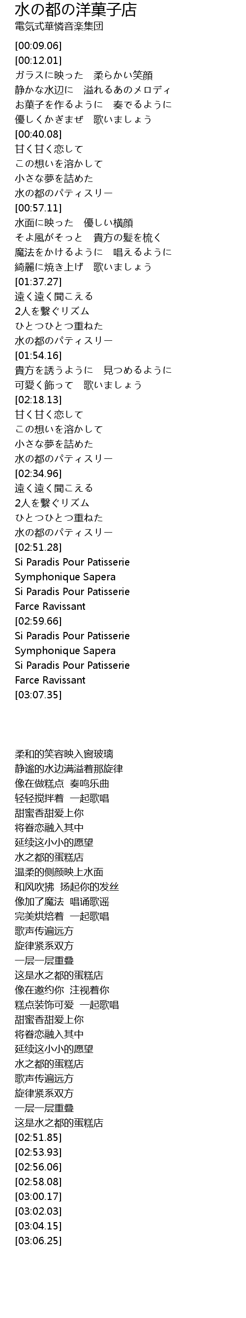 | [03:04.15] | Si Paradis Pour Patisserie |