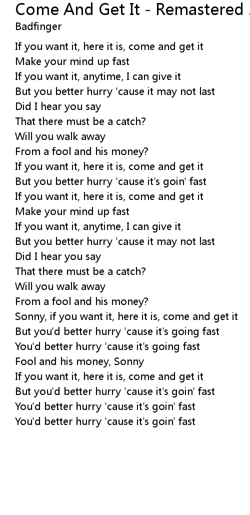 Come And Get It - Remastered 2010 Lyrics