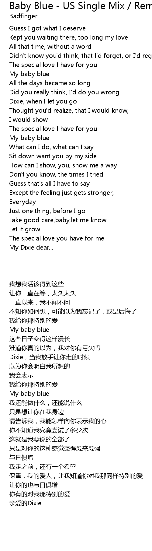 Baby Blue - US Single Mix / Remastered 2010 Lyrics