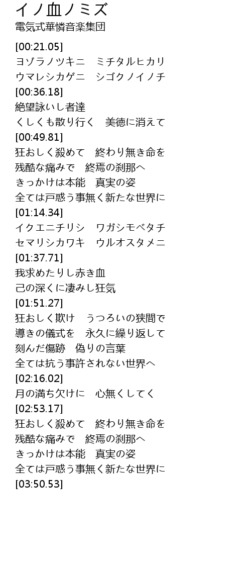 イノ血ノミズ xue Lyrics