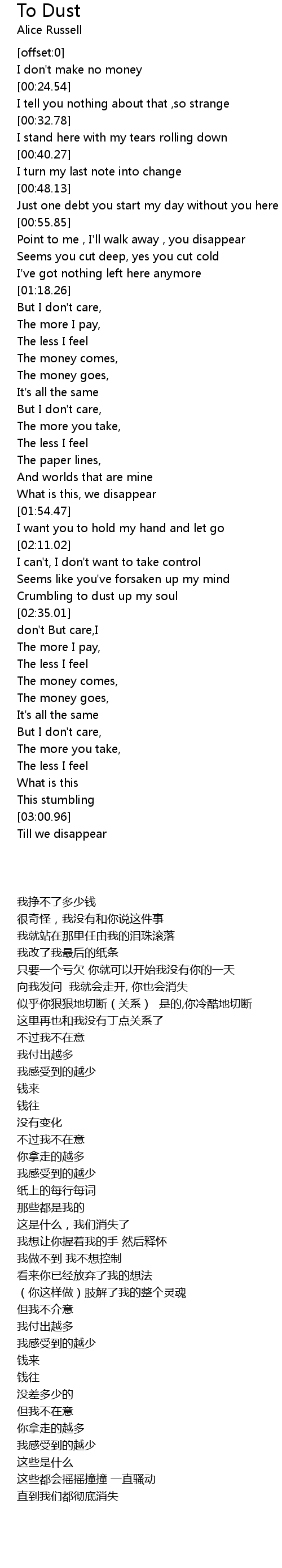 To Dust Lyrics