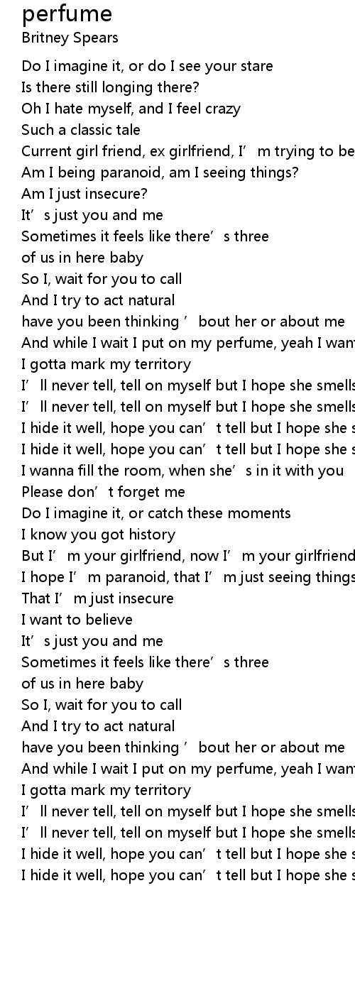 | And while I wait I put on my perfume, yeah I want it all over you | |