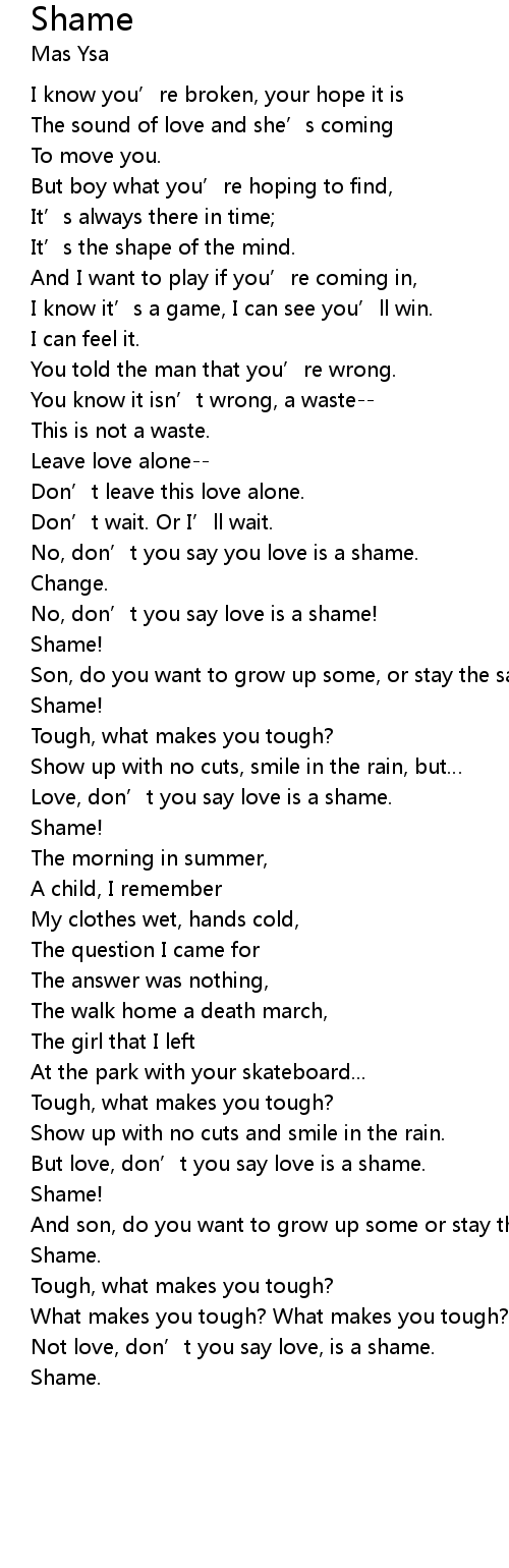 | But love, don’t you say love is a shame. | |