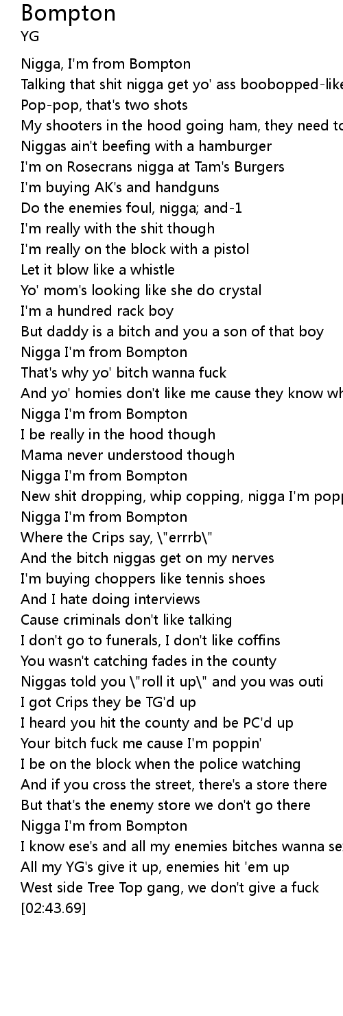 Nigga I'm from Bompton |