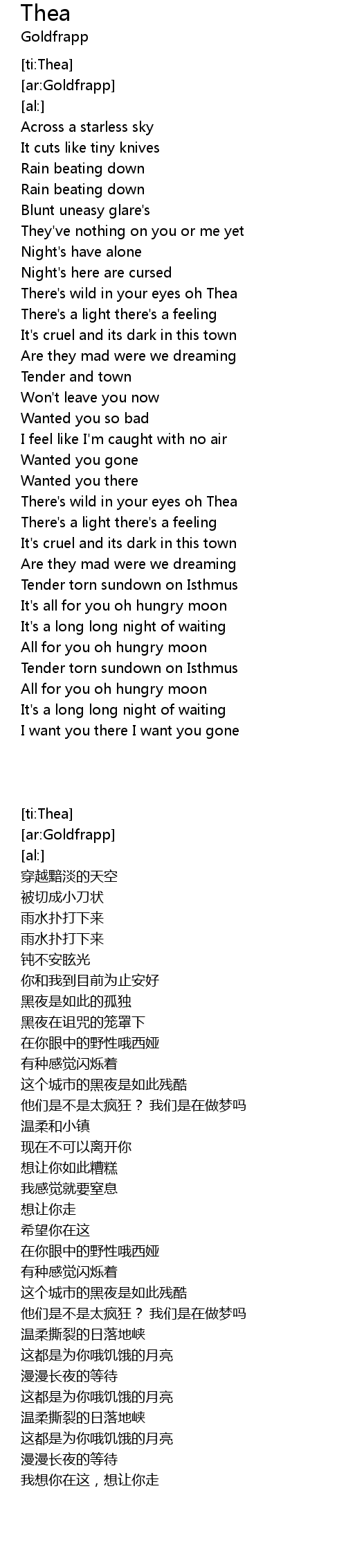 | [00:44.11] | There's wild in your eyes oh Thea |