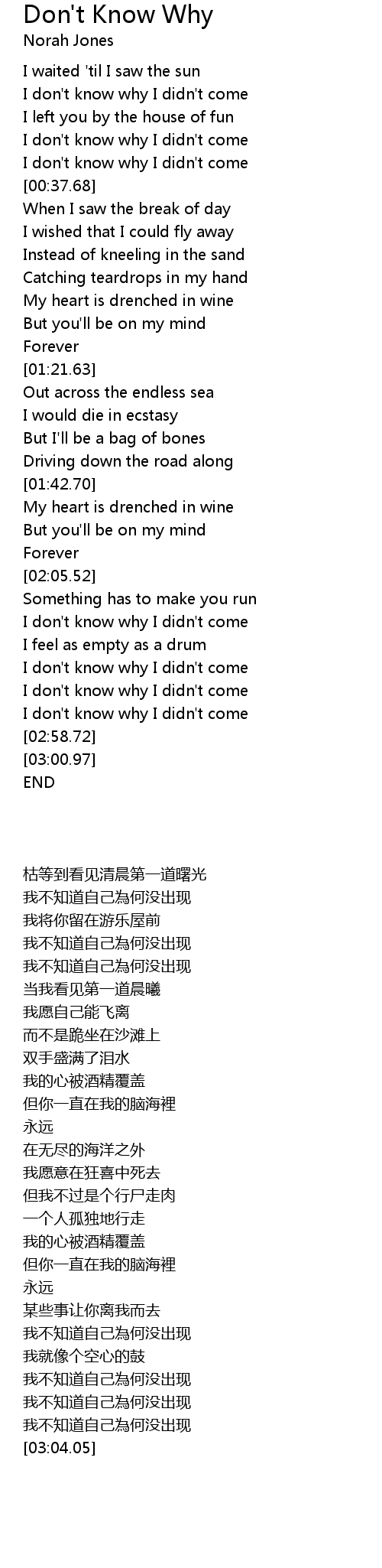Don't Know Why Lyrics