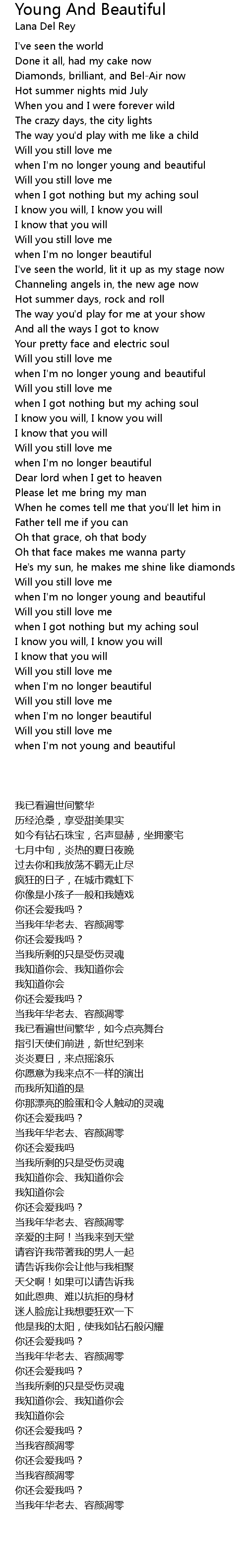 Young And Beautiful Lyrics