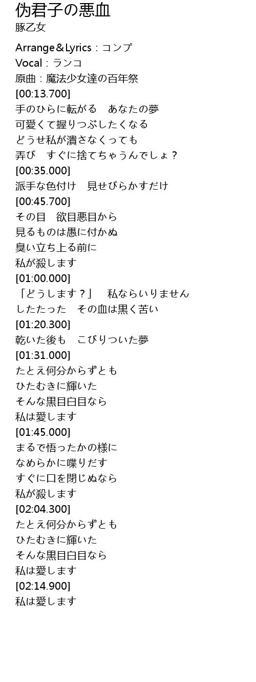 | [00:09.300] | 原曲:魔法少女達の百年祭 |
