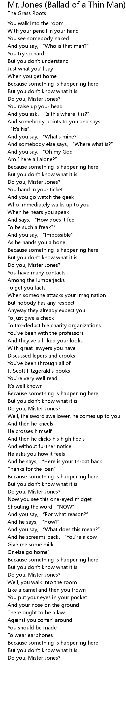 | Song | Mr. Jones (Ballad of a Thin Man) |